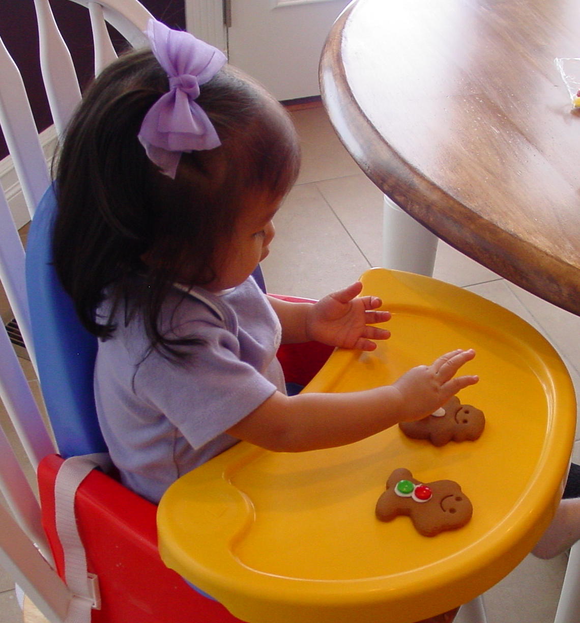 It's not very often I let Faith have candy, especially her very own big piece. After lunch the other day I let her have one of her treats she received from the Bott Christmas party in her stocking. She was in heaven! It was so funny to watch her and especially listen to the noises she would make while eating it, yum, um mm, lick-lick, giggle, slurp.... It was so cute!
